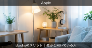 Apple Books は便利ですが、月額聴き放題ではありません。サービス比較の際に、 定額でたくさん聴けるか を期待するとミスマッチになります。 一方で、買い切り型としては進捗同期、オフライン、家族共有、ギフト機能まで揃っているため、 所有して長く使いたい 人にはかなり相性が良いです。自分の使い方が回遊型か、所有型かを分けて考えるべきサービスです。