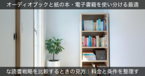 車(カーオーディオ)でオーディオブックを快適に聴く連携方法では、日本語コンテンツのコスパ重視 → audiobook.jp のような条件差が満足度に直結しやすいです。継続利用のしやすさや、自分の読み方・使い方との相性まで見ておくと失敗しにくくなります。
