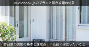 | 比較時の着眼点 | audiobook.jp(オトバンク):月額900円〜で国内最大の日本語作品数。年割プランがコスパ最強。チケットプランも |